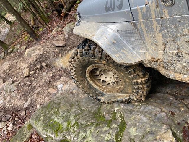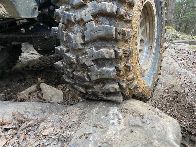 These tires performed exceptionally in the rocks. The four-ply construction flexed and molded around rocks easily, while the soft rubber compound provided incredible traction. When rockcrawling, I ran these between 2 and 8 PSI. I would feel comfortable running these as low as 10 PSI without beadlocks, but they really did their best around 6 PSI. The most amazing thing for me was the performance of these tires on wet rocks. These climbed in areas and trails that I have historically struggled with other mud-terrain tires. This tire is one of the best DOT-certified tires on the market for rockcrawling.