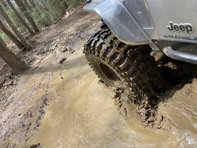 These tires do incredibly well in the mud. From deep puddles to thick clay pits, no amount of mud is slowing these tires down. They clean out easily and do very well at propelling you forward, even in deep ruts. The only word of caution I have is to be aware of how these fling mud because it was easy to coat the inside of my windshield when I used half-doors, and if I had another rig too close behind me, they didn’t always appreciate the rooster tail of mud these can throw.